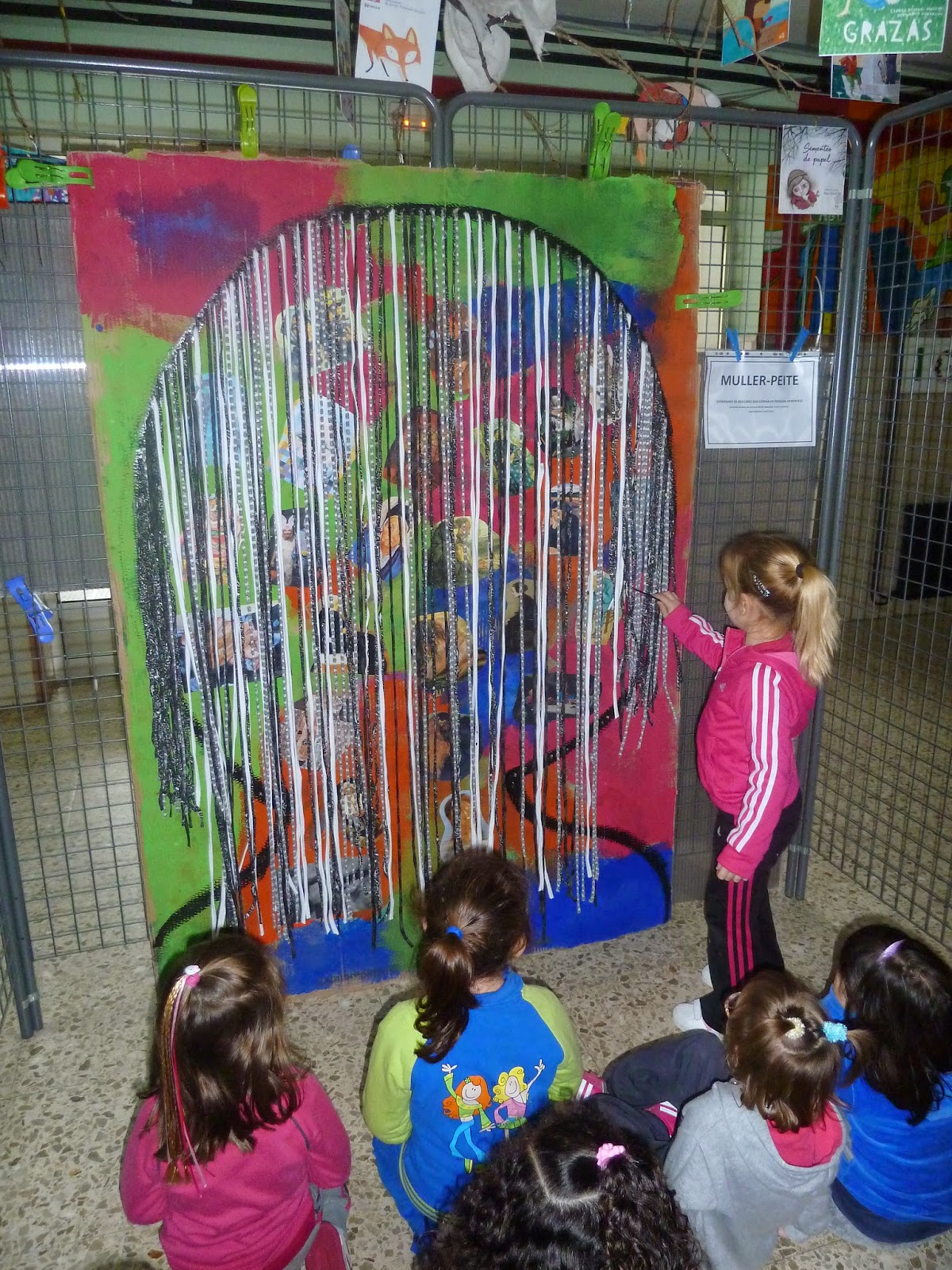 Inspirada na obra de Cubos da Memoria de Ibarrola fixemos esta escultura orgánica. Orgánica porque cambia constantemente de forma e sempre está en movemento. Xógase coa memoria da pel xa que está construída con papeis de diferentes texturas, cunha base tamén cambiante de madeira de cores.